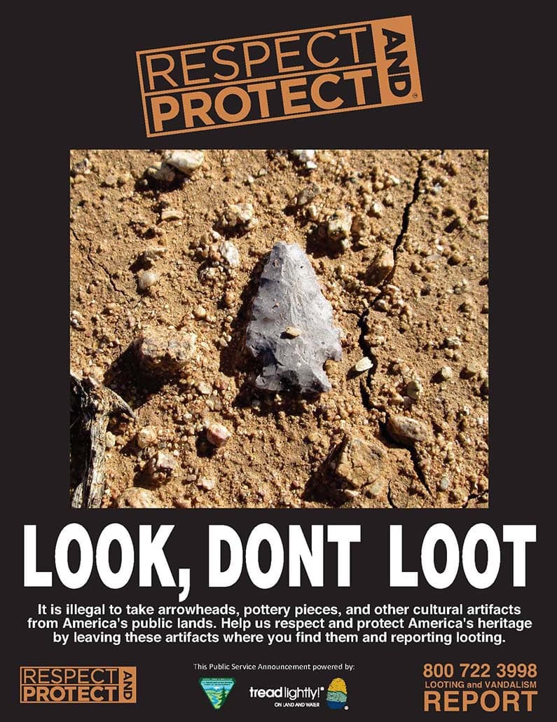 AN AWARENESS CAMPAIGN TO ELIMINATE THE LOOTING AND VANDALISM OF ARCHAEOLOGICAL AND PALEONTOLOGICAL RESOURCES.Through Respect and Protect, Tread Lightly! along with the U.S. Forest Service, Bureau of Land Management and many local State agencies, offers education and stewardship focusing on creating awareness around archaeological, historical and cultural resources.