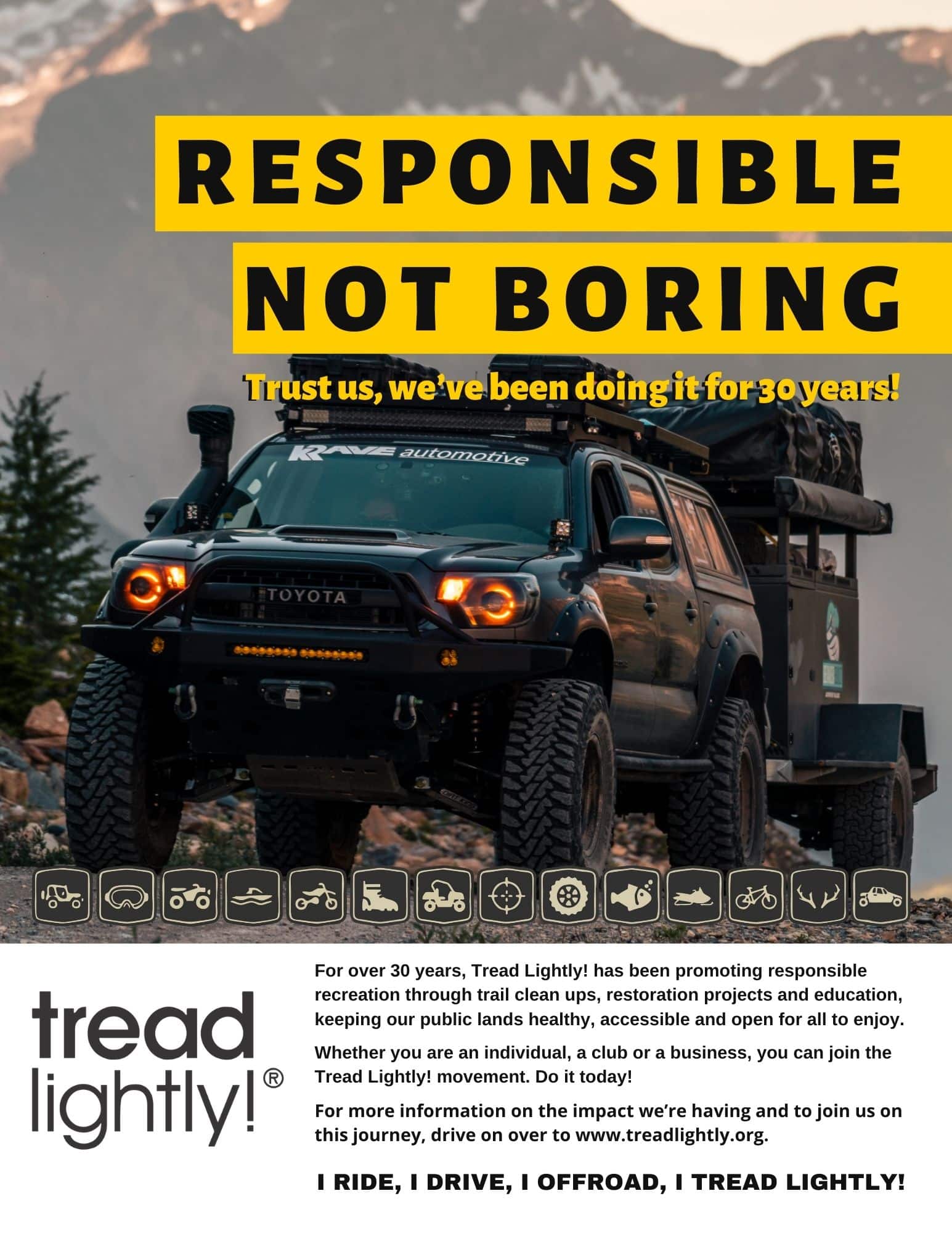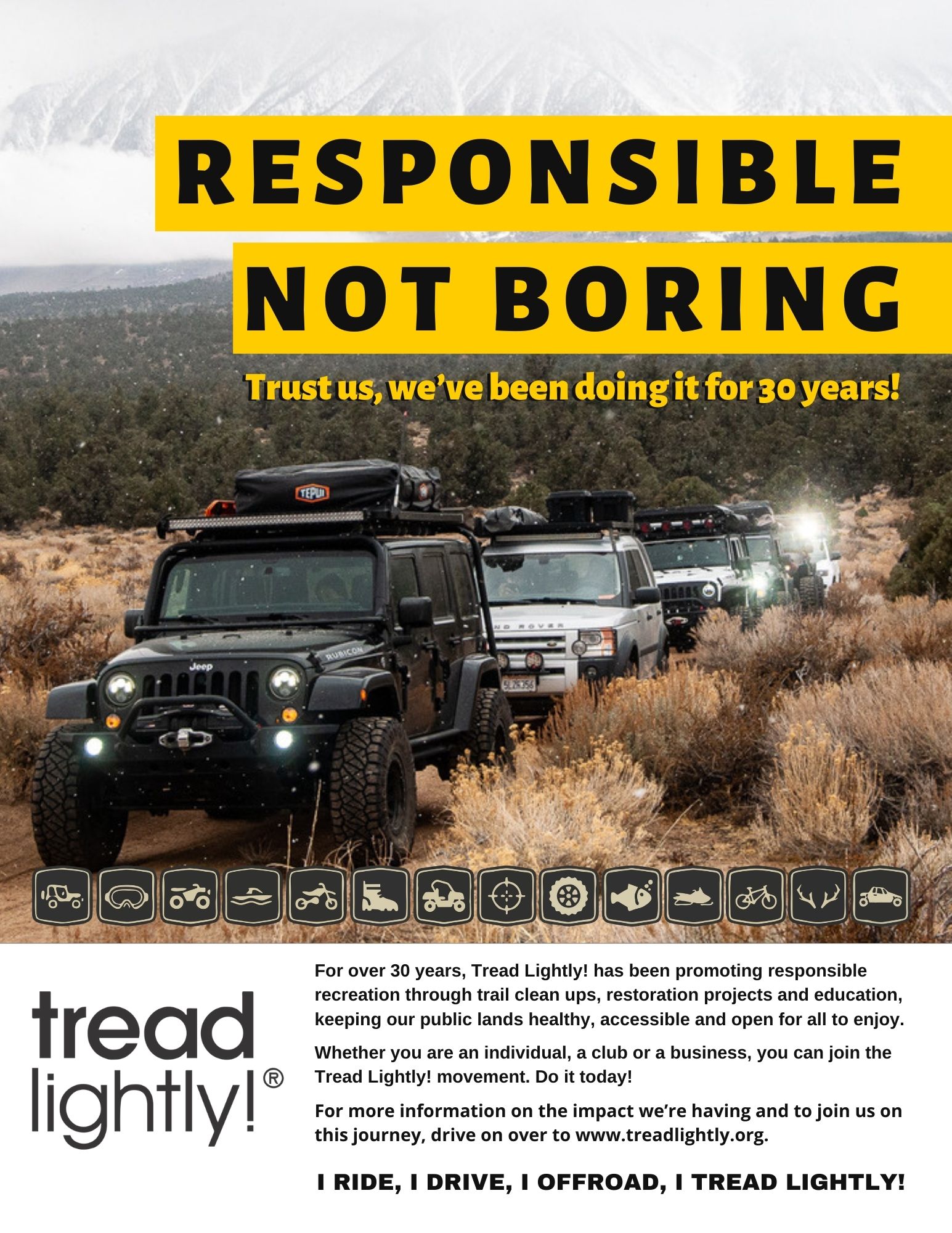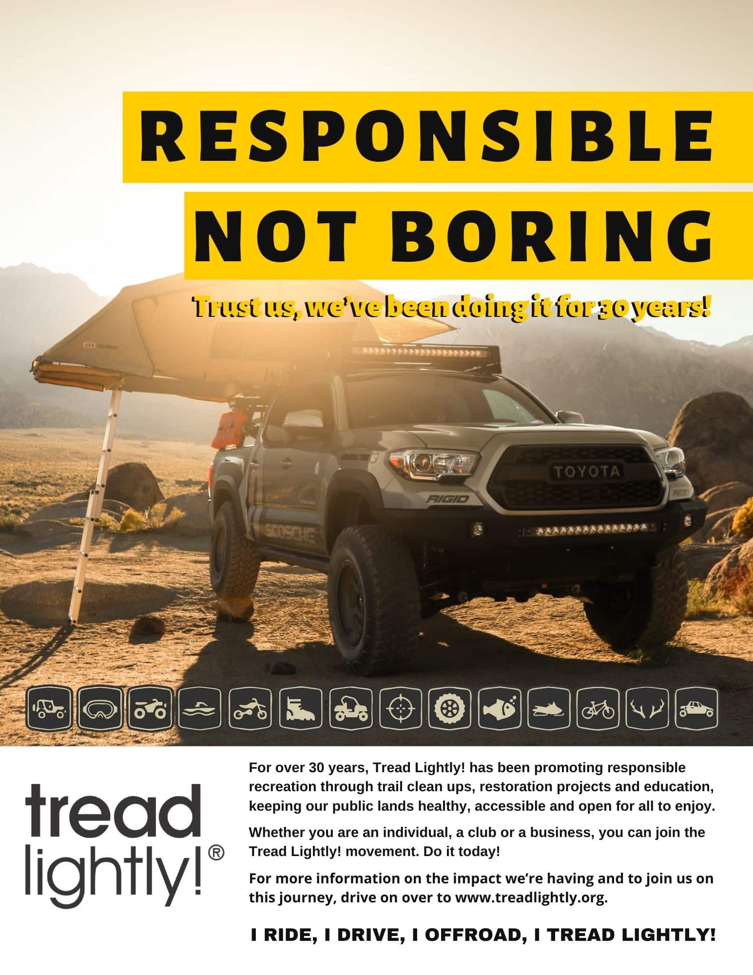 You may have noticed that Ride On, Respected Access and our other great programs aren’t as prominent lately. But don’t worry, they aren’t going anywhere, we’re just elevating the full Tread Lightly! brand to the forefront to help maintain the overall message of responsible motorized recreation on America’s Public Lands.