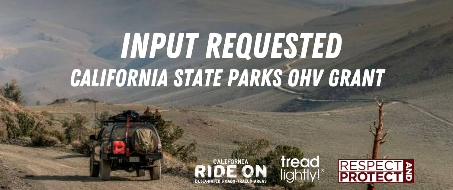 Tread Lightly! is seeking public input to help develop an off-highway grant proposal to the California State Parks Off-Highway Motor Vehicle Recreation Division now through February 28, 2019.