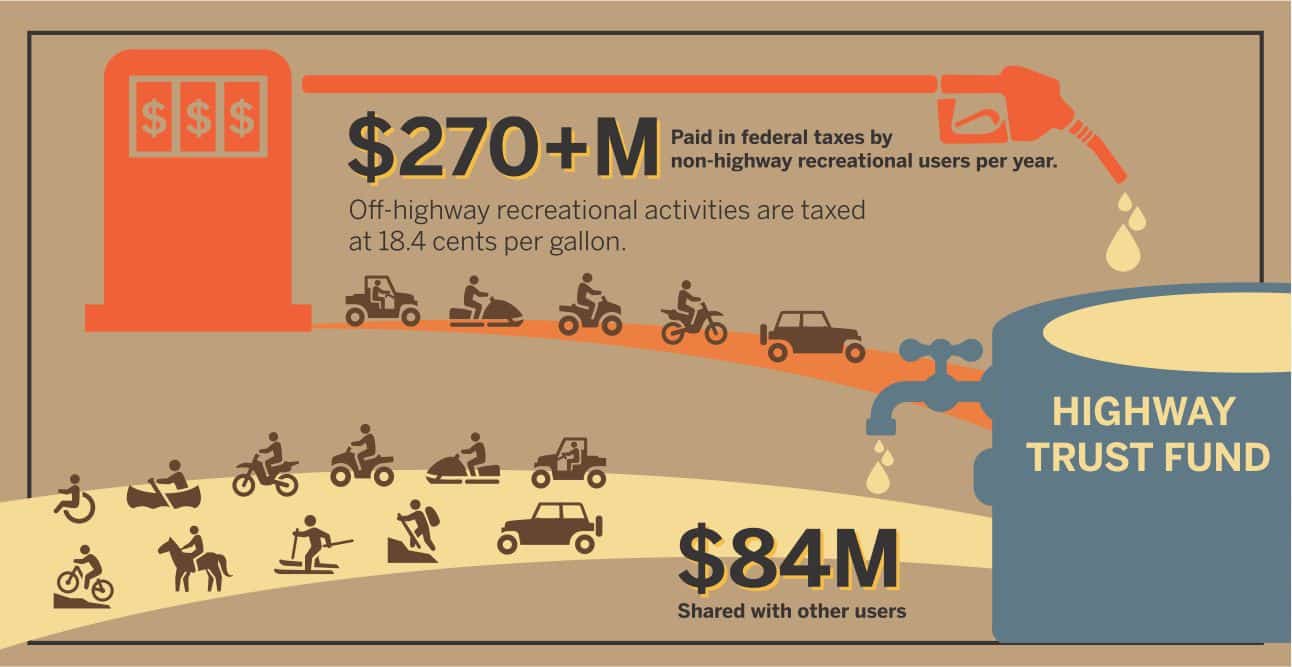 Non-highway vehicle recreation is estimated to generate $300 million in fuel taxes annually. The RTP is funded at $85 million annually. This money is distributed to states, which select which projects to fund.