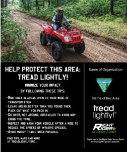 Thanks to the Right Rider Access Fund, Tread Lightly! is able to offer our FREE educational poster program again in 2018! This year, we have a new layout and offer new messaging and images to address the pressing recreation issues in your area.