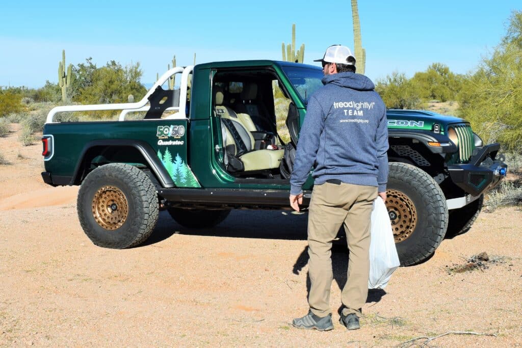 “Tread Lightly! was happy to be a part of Keep Our Desert Clean’s yearend cleanup. Our partnership with Quadratec 50 for 50 grants allows us to support organizations like KODC with clean ups and other stewardship projects. We were even lucky enough to be able to have Quadratec’s JTE SEMA build on site for the event. The turnout was impressive and the work done made a large impact! It was a good day on the OHV trails! Hundreds of off-road enthusiasts united forces to make a difference and show their appreciation of the public lands we enjoy here in Arizona. We look forward to collaborating again in the future!”-Michelle Ramos, Tread Lightly! Arizona Program Manager