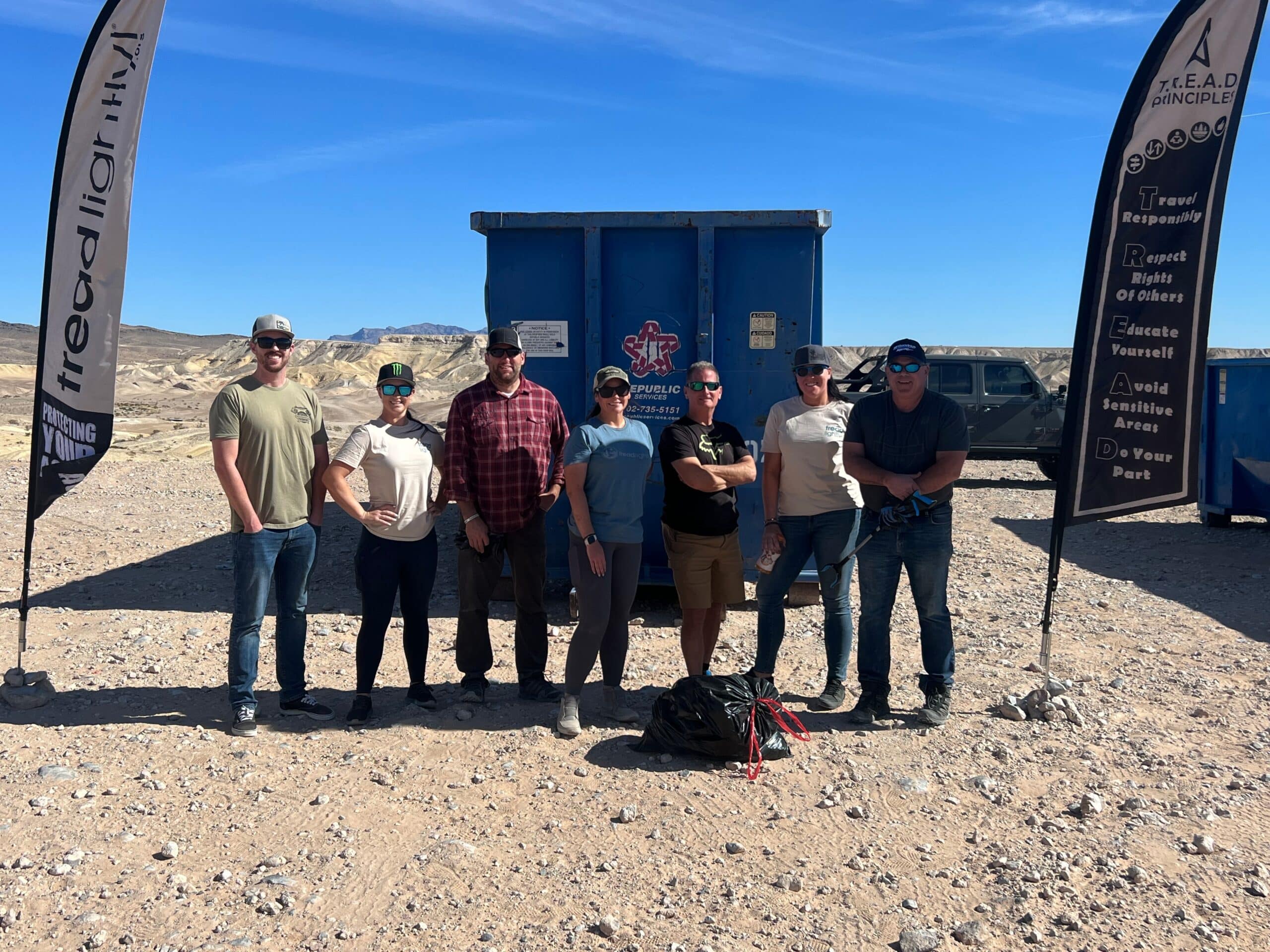 “What a great way to kick off the SEMA week! Nellis Dunes is one of those amazing open lands that has experienced its share of trash and debris on the trails and surrounding area. The garbage and waste is either from careless dumping from individuals, businesses or by water or winds carrying debris to the area. It was great to have notable industry professionals, legends, and media personalities all work together to improve that trail area. Countless bags of garbage and even a truck bed was removed. Quadratec and Tread Lightly! continue the good work toward 50 cleanups in 50 states.”-Terry Pritchard, Quadratec