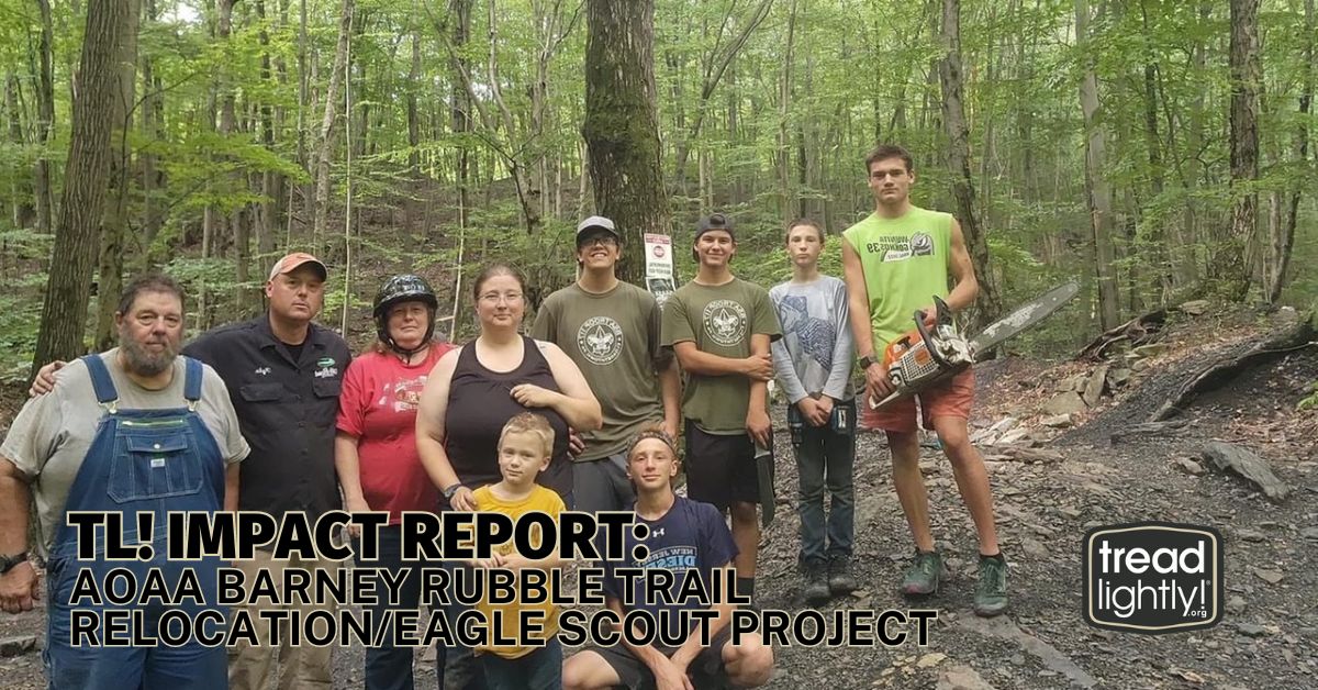 22 Sep Tread Lightly! Impact Report: AOAA Barney Rubble Trail Relocation/Eagle Scout Project