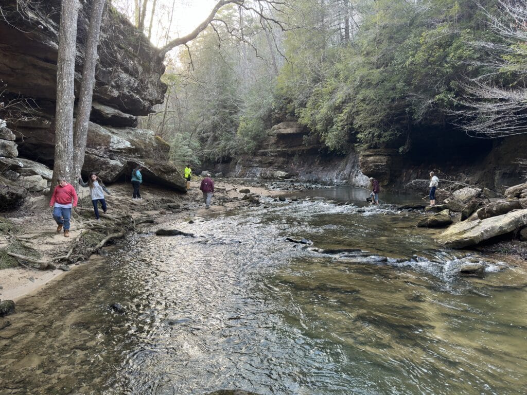 The group met for lunch at brushy lake where they picked up around the day-use area, then went to another location where they hiked down to the waterfalls collecting trash along the way. In total, the team spent about six hours cleaning up these areas and enjoying the beautiful Bankhead National Forest.