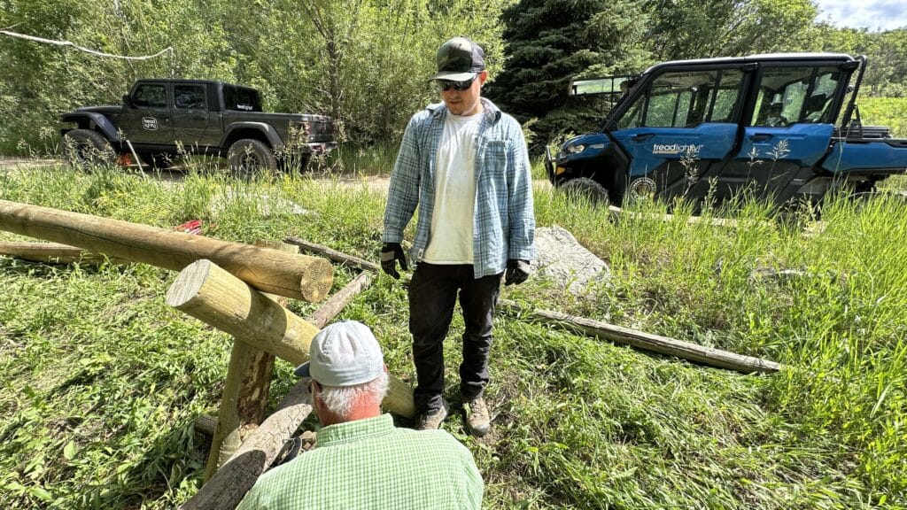 On July 17, 2023, a local volunteer joined multiple Tread Lightly! staff members to install buck and rail fencing to protect a spring at the Buckland Campground area near Bountiful, Utah. The Tread Lightly! team have done multiple improvement projects in this area for several years to help keep this area near its headquarters healthy and well-maintained for riders and other outdoor recreationalists in the area.