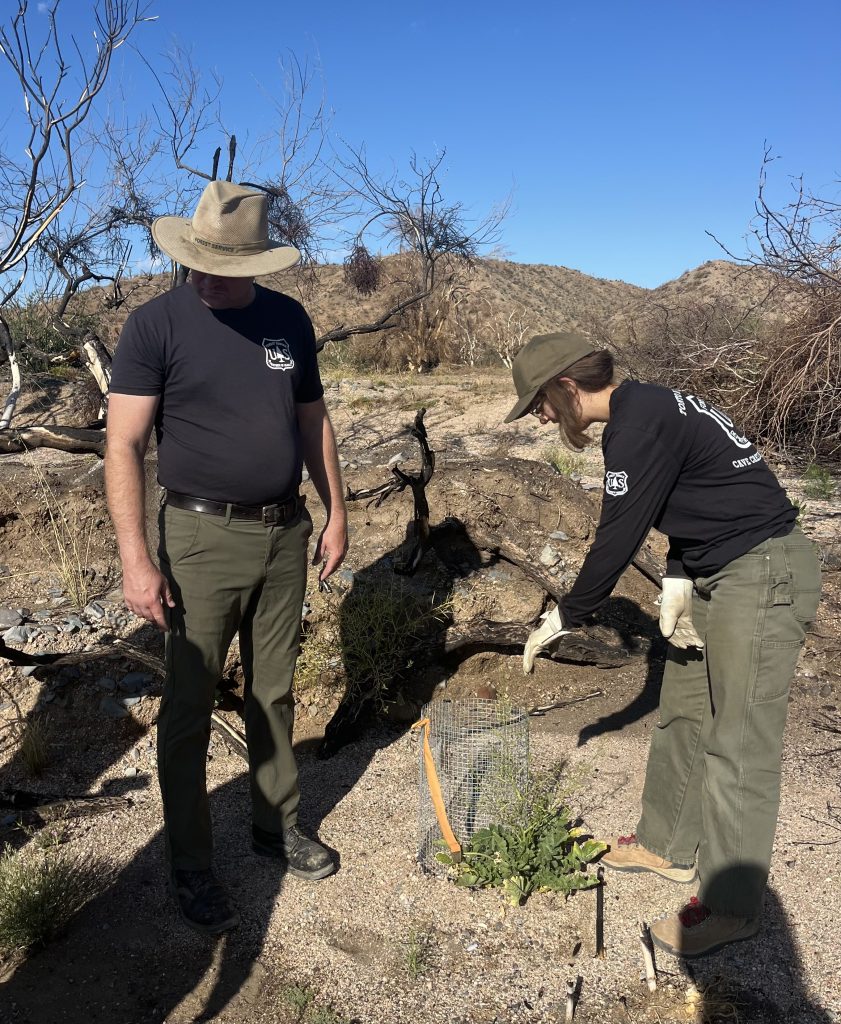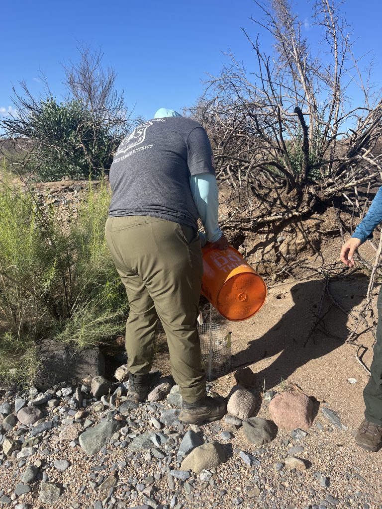 On June 4, two volunteers returned with the Forest Service to monitor and water the newly planted flora. Extreme desert temperatures can make mortality rates high, so monitoring and water is necessary to support new vegetation during summer months in the fire rehabilitation area.