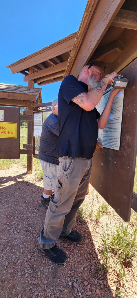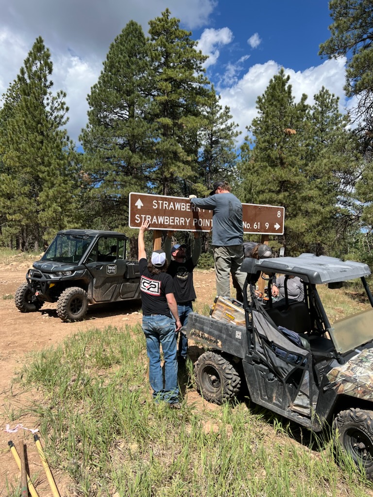 Volunteers and coordinators began with the Yankee Meadows area to replace and update designated route markers and Carsonites along the Markagunt OHV Trail. They also installed updated signage that clearly marks the motorized trail networks on kiosks at three different locations in the area.