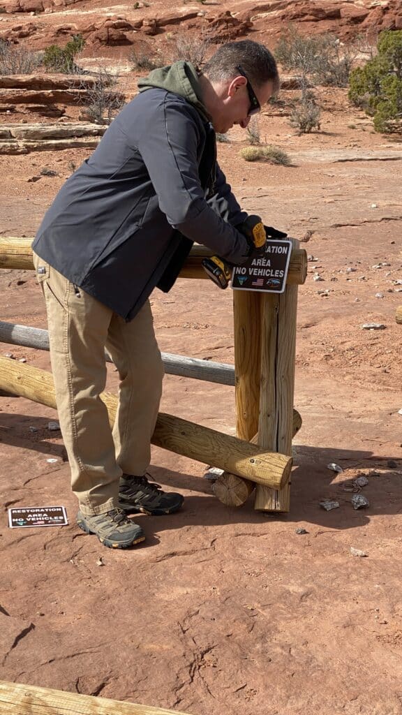 Volunteers also rebuilt a section of around 70 feet of buck and rail that is used to protect sensitive areas from motorized traffic. In total, this project helps protect eight miles of iconic Moab trail.