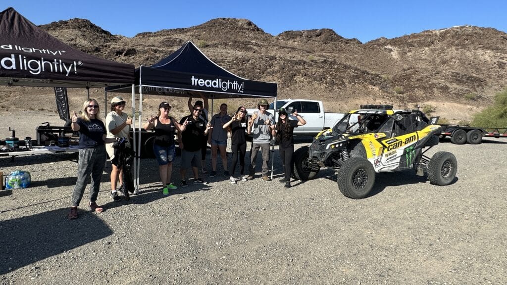 On August 25, 2023, volunteers from as far as 200 miles away, gathered at the Cienega Springs Recreation Area to clean up the beautiful desert and off-road trails scattered with trigger trash and illegally dumped items such as a broken oven, mattresses, and even a vehicle. In partnership with Can-Am, Tread Lightly! Ambassador Sara Price, and six volunteers were able to remove over 7,800 lbs of waste from the desert area, an average of 1,300 lbs per person.