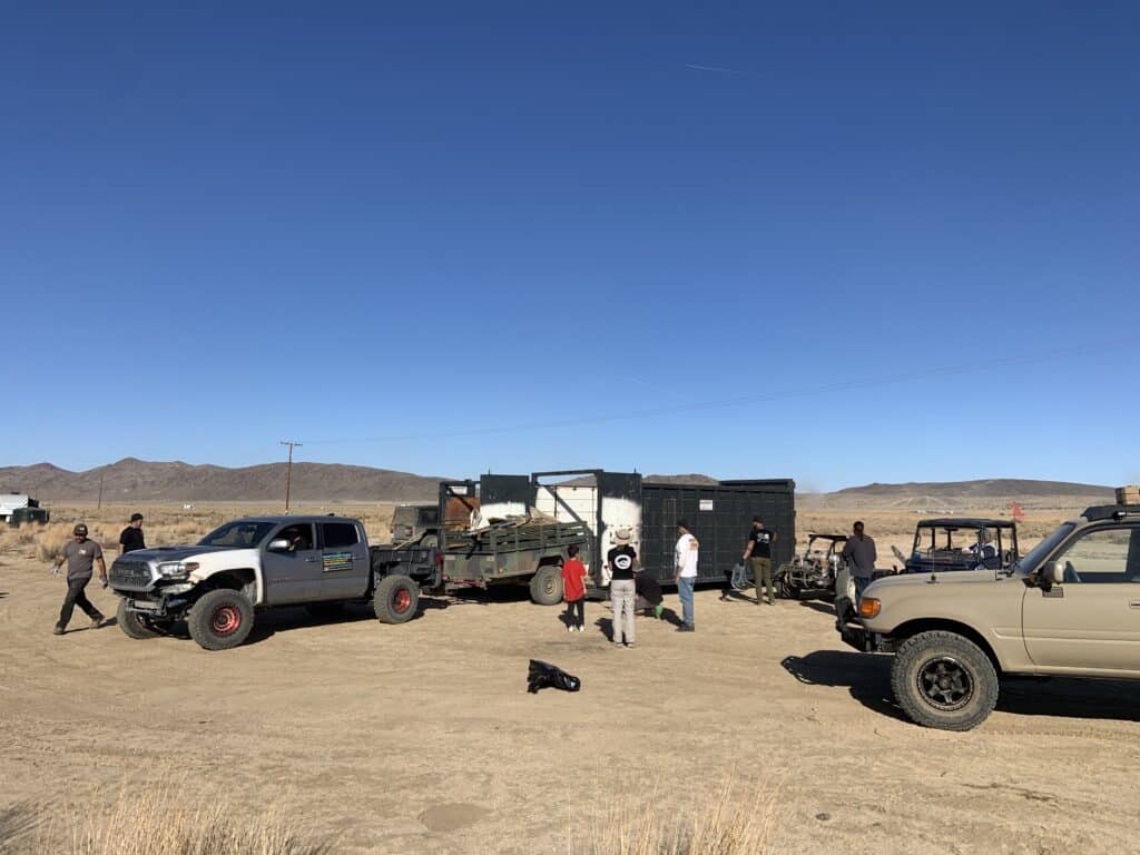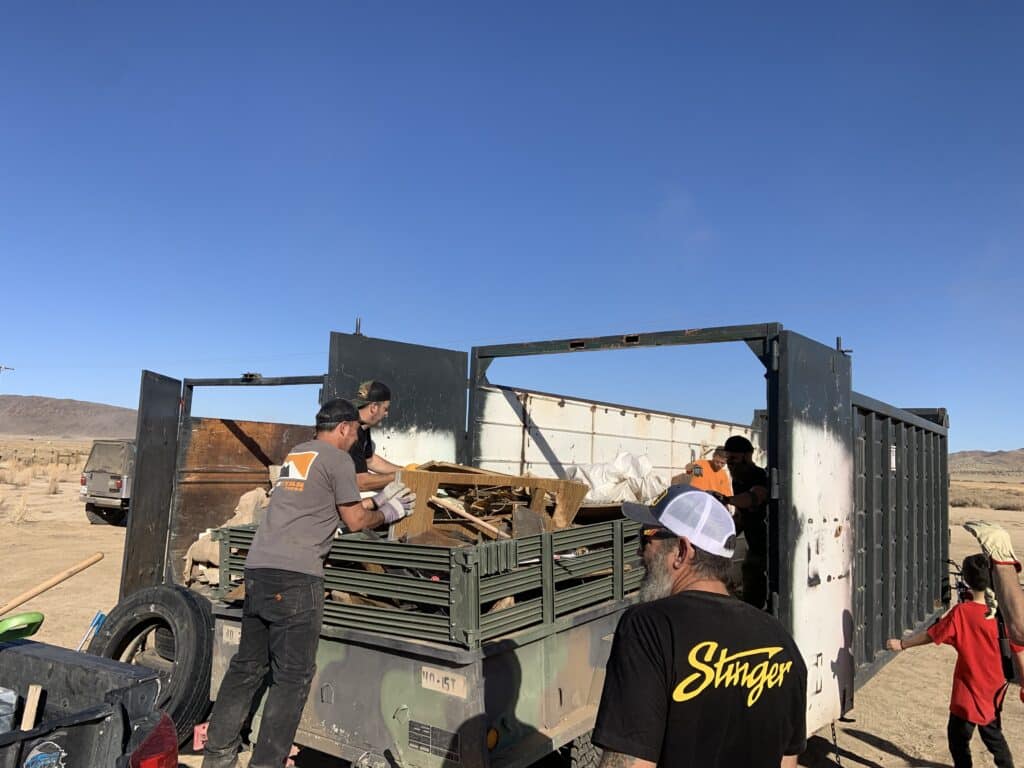 “Desert Cleanse Project appreciates when groups like Tread Lightly, Rigged for Dirt, Eezy Supplies, Milestar Tires, Stinger offroad, and Our Land support our community with these group cleanup efforts. DCP was able to connect with local businesses like The Allenbach Group Cross Country Mortgage and Dang Brothers Pizza to support this area with dumpsters and facilities for the volunteers and campers.”-Colin Sauter, Desert Cleanse Project