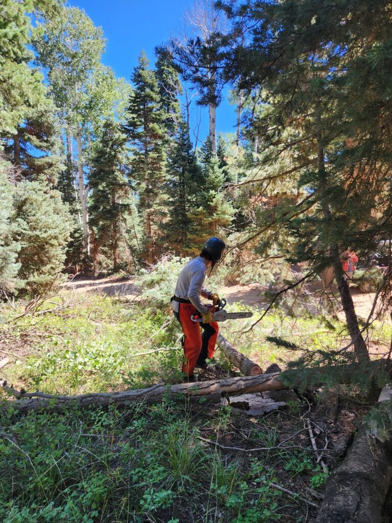 On September 15, 2023, Tread Lightly! with support from Can Am worked with the Cedar City Ranger District to complete a trail access project on Navajo Lake Rd#035 and Pinks Trail. Forest Service and Tread Lightly! employees worked to clear overgrown vegetation along Forest Road #035 and dugout steps along the foot path for better access to all types of public land enthusiasts.