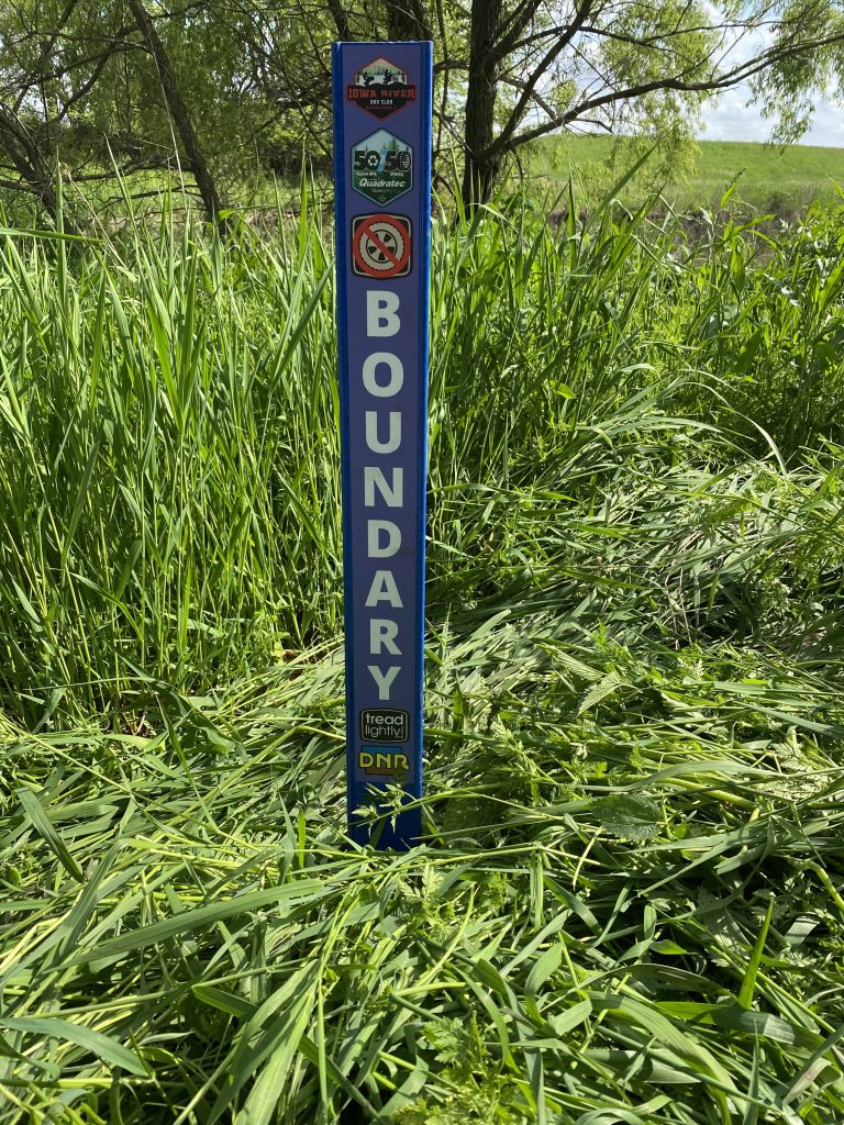 The Iowa River OHV club installed two educational signs at the Nicholson-Ford OHV Park in Marshalltown, IA. The signage included information about the T.R.E.A.D Principles and park regulations to help visitors enjoy the area safely and responsibly. Along with the signage, 20 Carsonite boundary makers were installed to keep visitors out of the water and inside the trail system to prevent issue on adjacent private property.