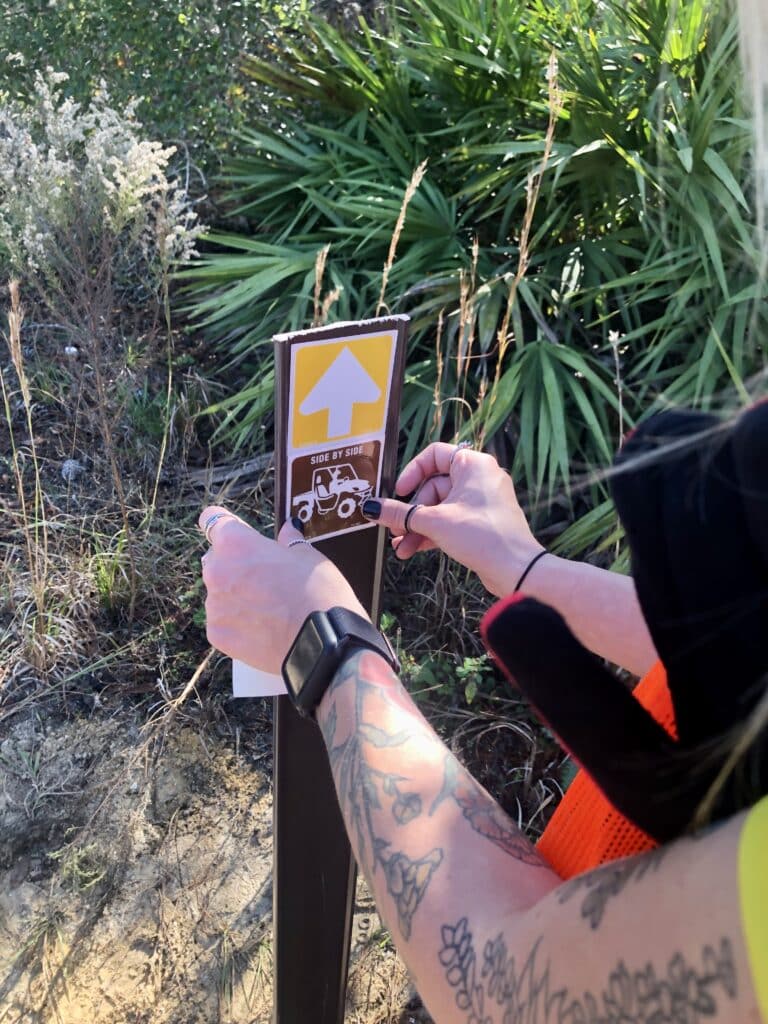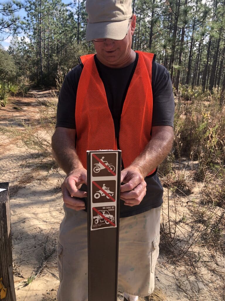 Over December 9 and 10, 2022, over a dozen volunteers and staff from the US Forest Service gathered to support some of the 198 miles of OHV trails throughout the Ocala National Forest by updating old and missing signage and directional markers and installing bollard posts.