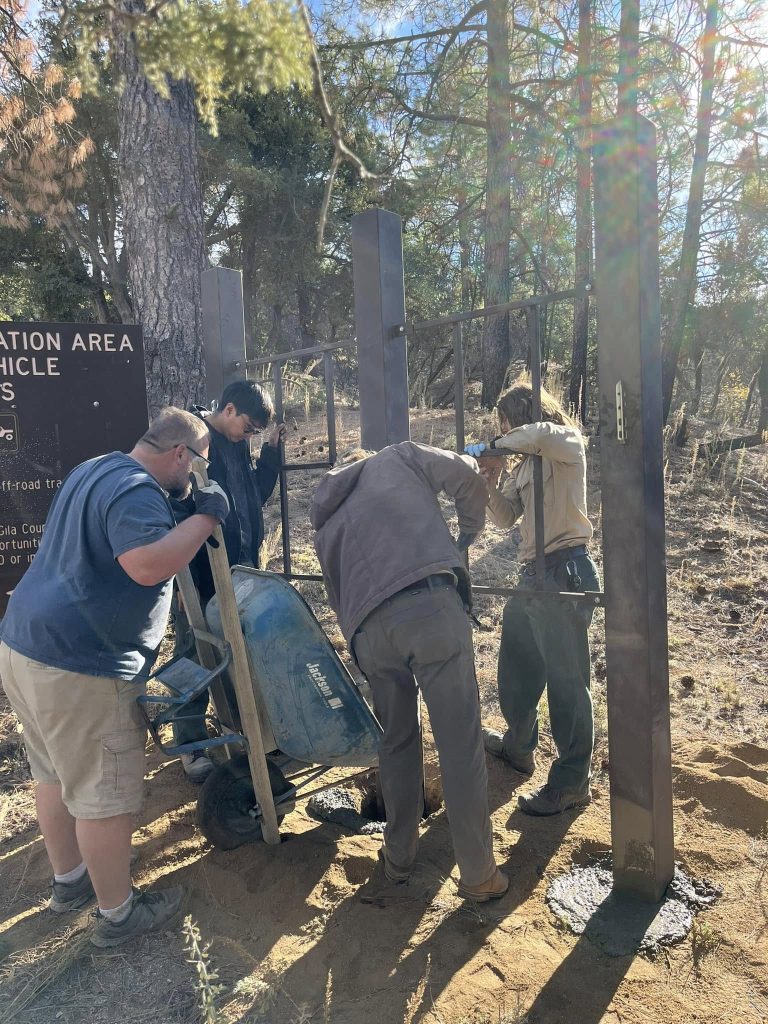 On November 28, 2024, five volunteers installed much-needed trail kiosks and signage at Pioneer Pass in the Globe Ranger District, near the Pinal Mountains.