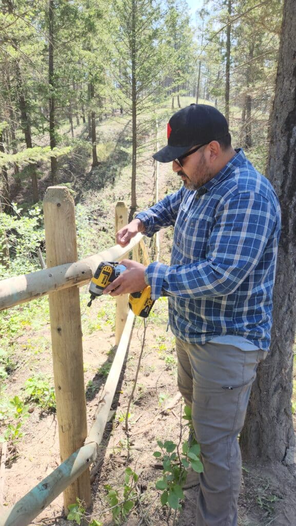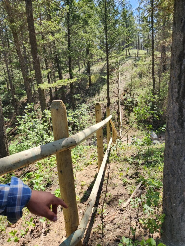 Description: On June 6 and 7, 2023 six volunteers from the Two Wolf Foundation worked along with the U.S. Forest Service and Tread Lightly! to install a new 700’ split rail fence to protect the old trading post site at Rat Springs in the Kootenai National Forest in Montana. This area has a rich history of land stewardship passed down by the Kooska Native American Tribe.