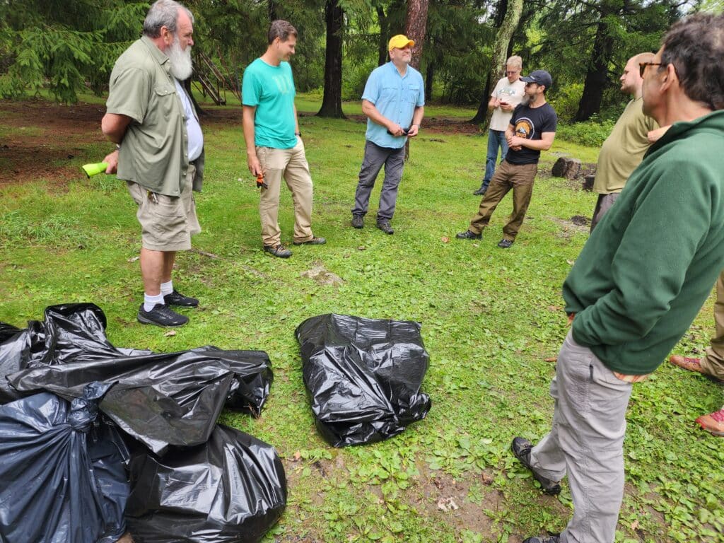 Description: On August 10, 2023, 15 attendees of the Mid Atlantic Overland Festival volunteered to leave dispersed camping sites at Rothrock State Forest better than they found them. Together the volunteers removed 850 pounds of trash from campsites, vistas and trailside areas, along with building materials dumped at a fire tower site. Volunteers also removed five illegitimate firepits and downsized one large pit to a more manageable size to help protect the area from potential wildfire danger. In total, 22 miles of the state forest were improved.