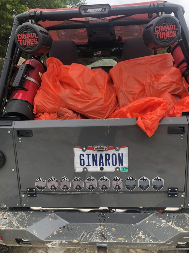 Description: On July 9, 35 volunteers joined together to clean up the Sand Mine Trail area near Caryville, TN. This project was organized and hosted by Flex, Rocks and Rollovers with support from Tread Lightly! and other off-road industry partners. Together, volunteers removed 43 bags of trash and an assortment of abandoned vehicle parts from the area totaling 1,850 pounds of trash and 8 miles of trail improvement. Thank you to these incredible volunteers and partners for supporting and improving Tennessee off-roading trail access.