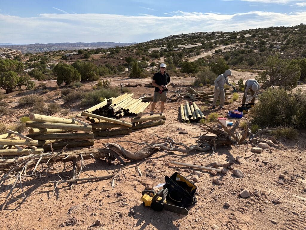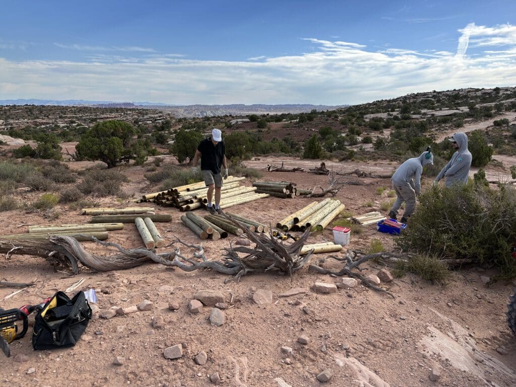 On August 8th, Red Rock 4-Wheelers, Tread Lightly! and the Bureau of Land Management Moab Field Office started work on a trail project in the Seven Mile Rim area of Moab, Utah. The work focused on building nearly 40 braces for a buck and rail fencing project designed to rehabilitate areas impacted by non-designated travel that has occurred in the area.