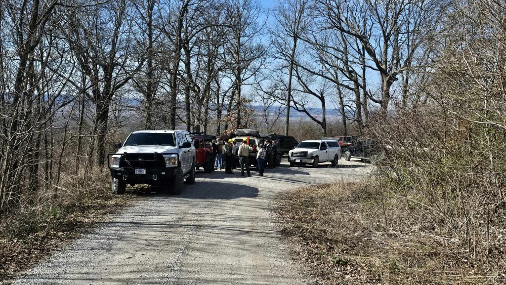 Description: On March 9, 2024, 23 volunteers from Jeep N’ Shanwnee worked together with the Mississippi Bluffs Ranger District of the Shawnee National Forest to clean up three vistas in preparation for the path of totality for the 2024 solar eclipse. 185 pounds of trash were removed from the area, improving eight miles of trail.