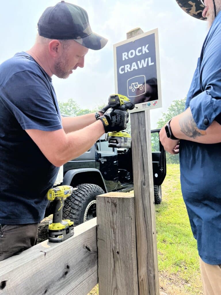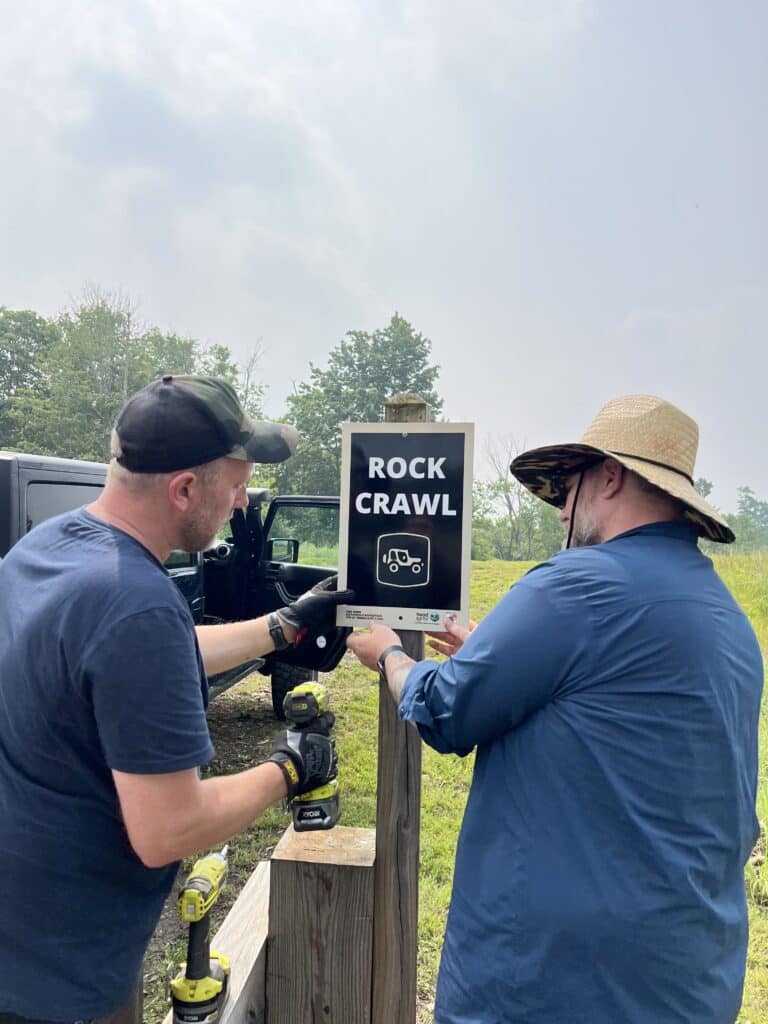 On June 29, nine volunteers gathered at the St. John’s Rock ORV Trail in Savage River State Forest in Maryland to update signage in the area. The volunteers installed trails signage, assurance markers, and a new kiosk sign with map updates.