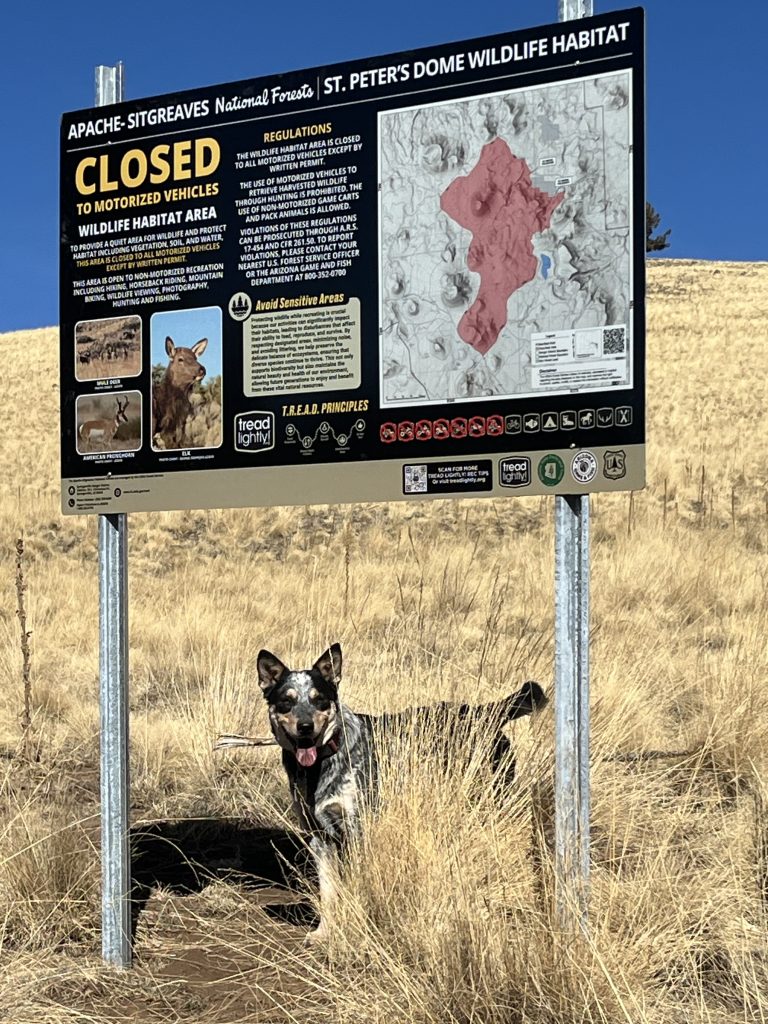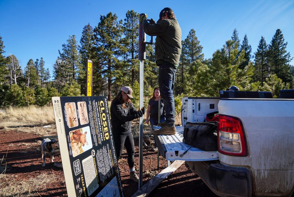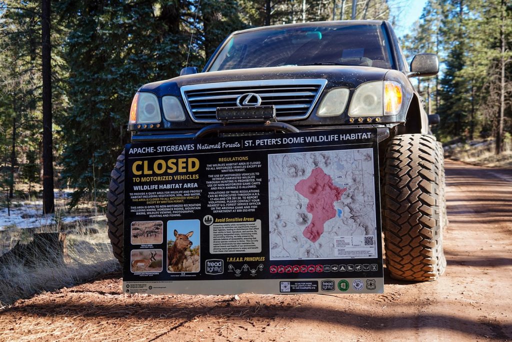“This project went off without a hitch. Michelle with Tread Lightly! was very instrumental in producing a beautiful sign to get our message out about a non-motorized area. Michelle brought a crew with her, the Apache-Sitgreaves Forest Service sent a crew, we had volunteers from Navajo County Search and Rescue and Apache County ATV Club to install the signs. It was a great collaborative effort between organizations working towards a common goal to protect our environment. We look forward to working with Tread Lightly! on future projects!”-Officer Nancy Huser, Arizona Game and Fish Department