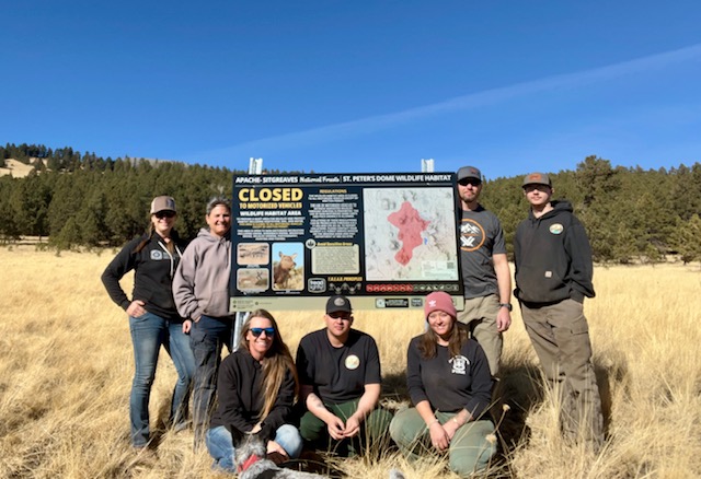 Description:On December 18 and 19, 2024, ten volunteers installed 18 wildlife habitat protection signs along the OHV trails in the St. Peter’s Dome area.