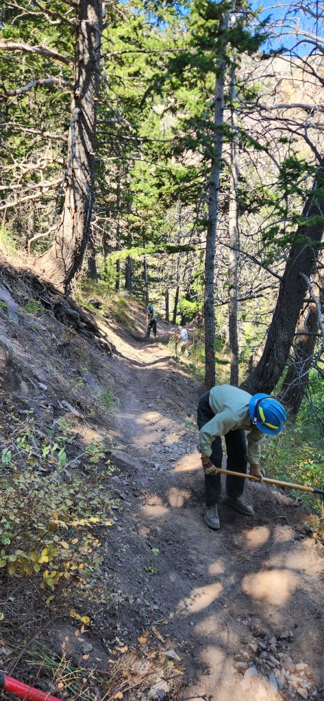Together, the team worked to dig drain ditches along the trail to decrease the natural erosion caused by snowmelt and rain along the Stansbury Front. Water can erode and damage the trail system by causing ditches that can be dangerous for users. In total, the team improved 25 miles of trail.