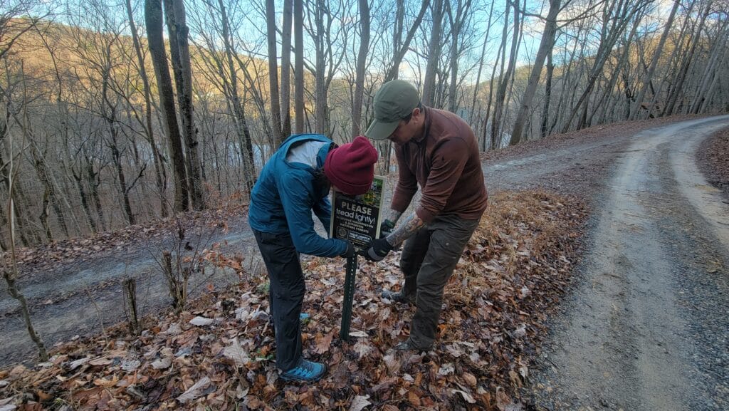 In total, the volunteers removed 1,920 lbs of trash from the forest, doing their part to protect this area and leave it better than they found it. Finally, they installed six signs and two Carsonite dispersed camping posts to help educate other outdoor users who visit the forest in the future. For the second year, GFL Environmental hauled away the trash Tread Lightly! volunteers removed from Jefferson National Forest and covered the cost in full.