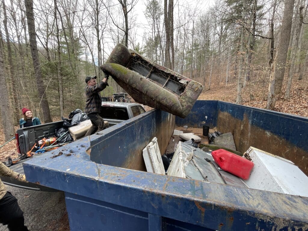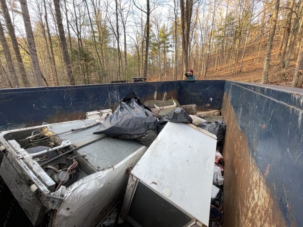 On December 3, 2022, 7 volunteers cleaned up Tank Hollow Road and campsites in the Jefferson National Forest. The volunteers cleaned up just under a ton of trash from the trail, tributary creek and dispersed campsite that were being used as illegal dump sites. The trash included a fridge, chest freezer and two couches. The volunteers also dismantled two illegal fire pits.