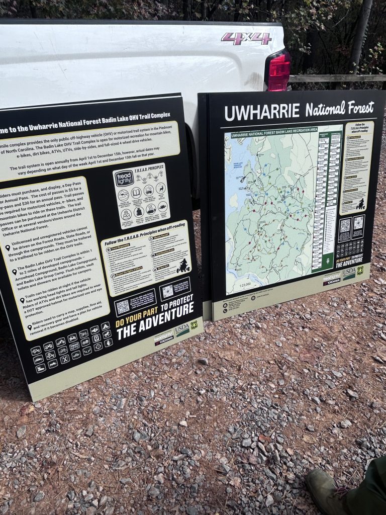 “Thank you to our great partner, Yokohama Tires, for helping to fund these kiosk signs in Uwharrie National Forest. The trail system in Uwharrie has seven kiosk units at various trailheads and access points on the Badin Lake OHV trail system. But all of those units have had old, faded signage on them if there was anything at all. Thanks to Yokohama, all seven kiosks have fresh, bright signage that tells users how to ride responsibly, what vehicles are allowed on the trails and how to secure the necessary permits for access. Most of the kiosk units also carry a map of the OHV trail system to make sure riders know where they are in the forest and where each trail leads. Thank you, Yokohama, for helping us Protect the Adventure and Protect the Fun!”- Lowell Eckart, Southeast Program Manager, Tread Lightly!