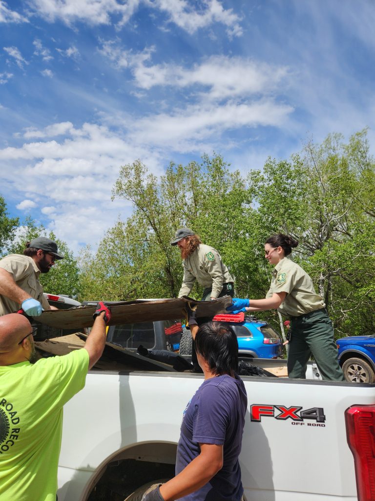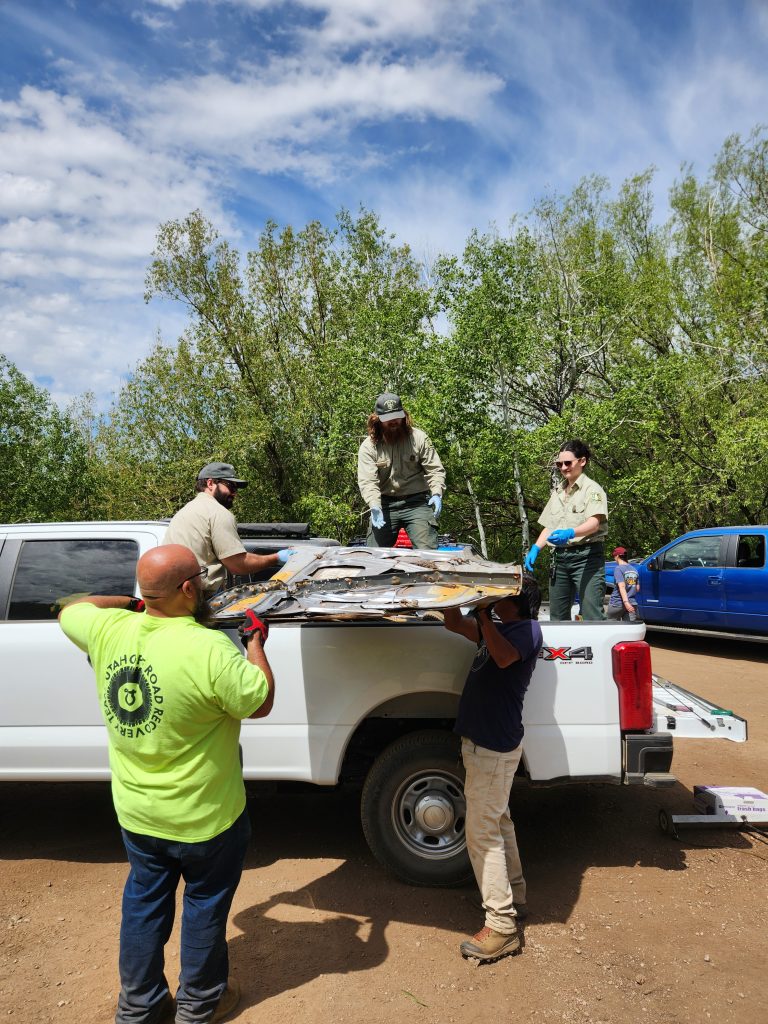 Description: On June 1, 2024, 16 volunteers and three Forest Service employees gathered on opening day of the Upper Ward Canyon Road for Tread Lightly!’s annual Ward Canyon Cleanup. Ward Canyon, located near the TL! HQ, is a popular riding and recreational shooting area. In total, volunteers removed over 700 pounds of trash from the road