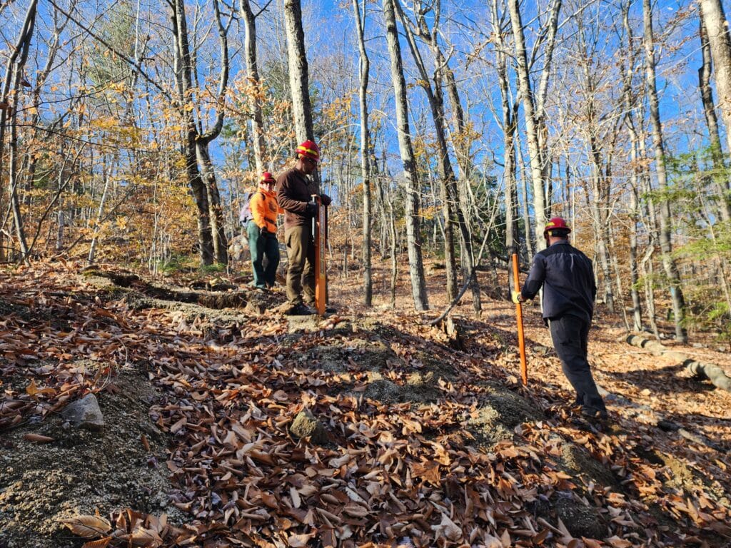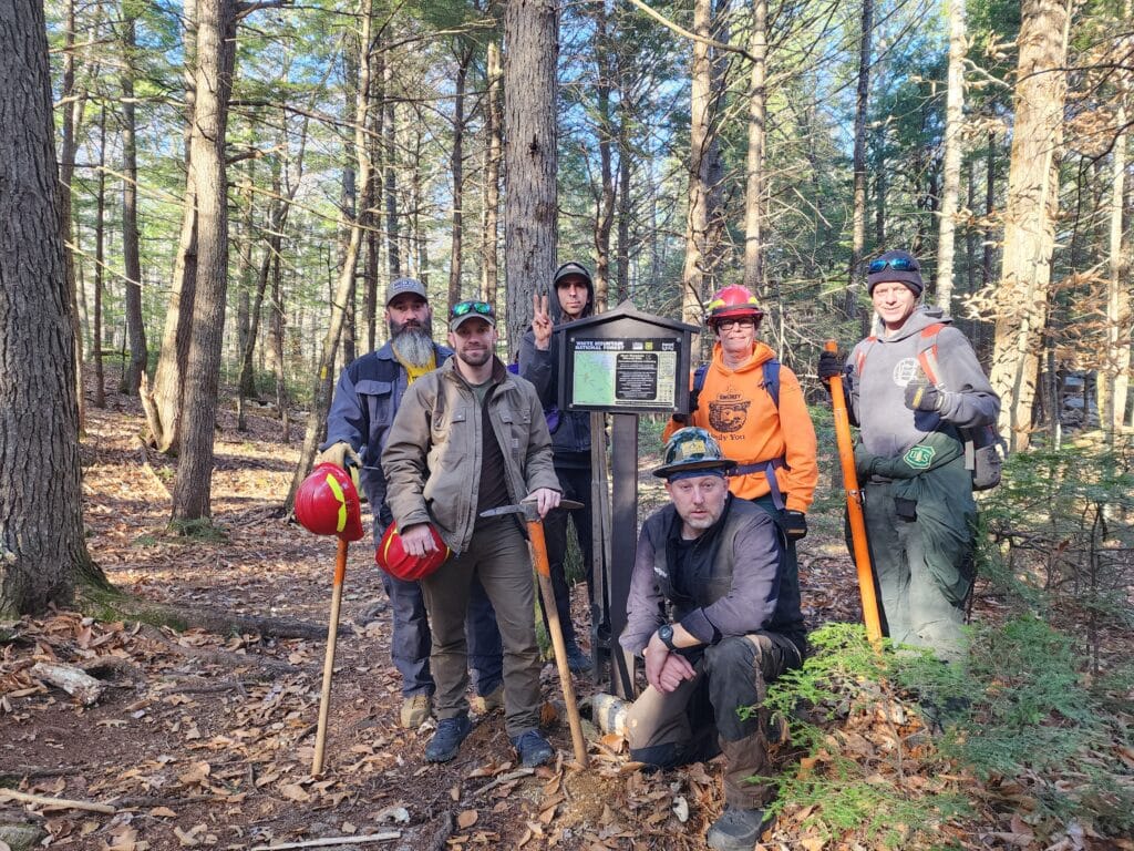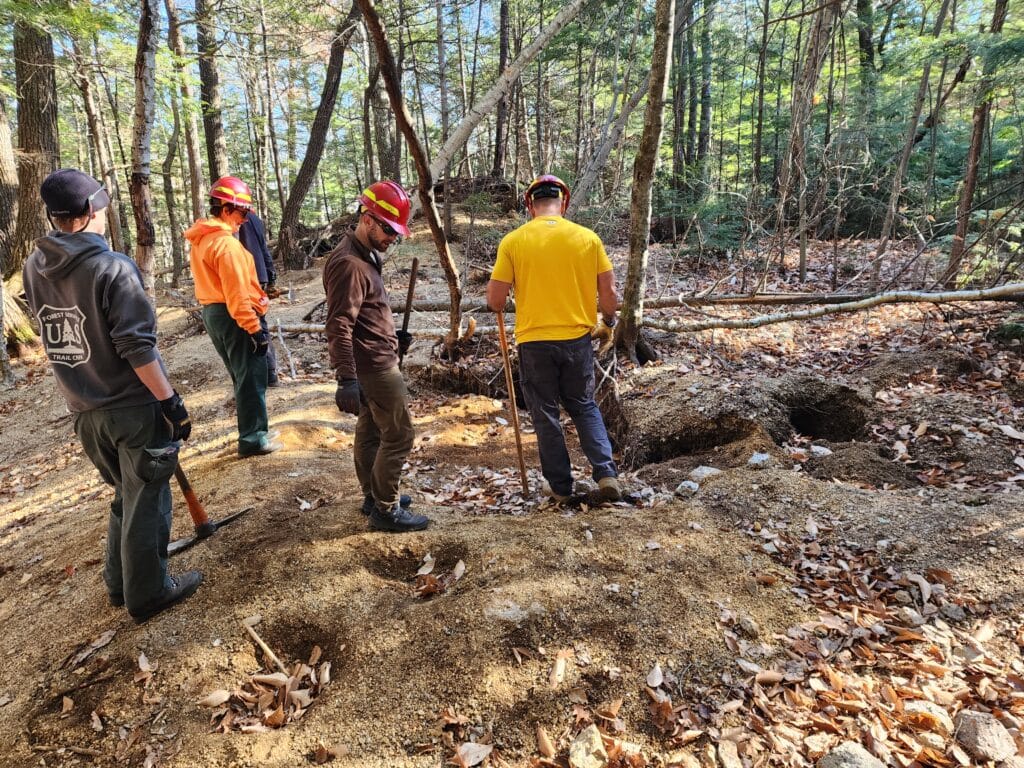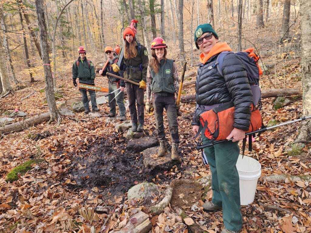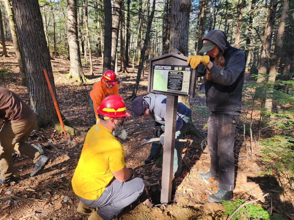 Description: On November 15 and 16, 2023, volunteers worked to improve recreational opportunities in the White Mountain National Forest in New Hampshire.