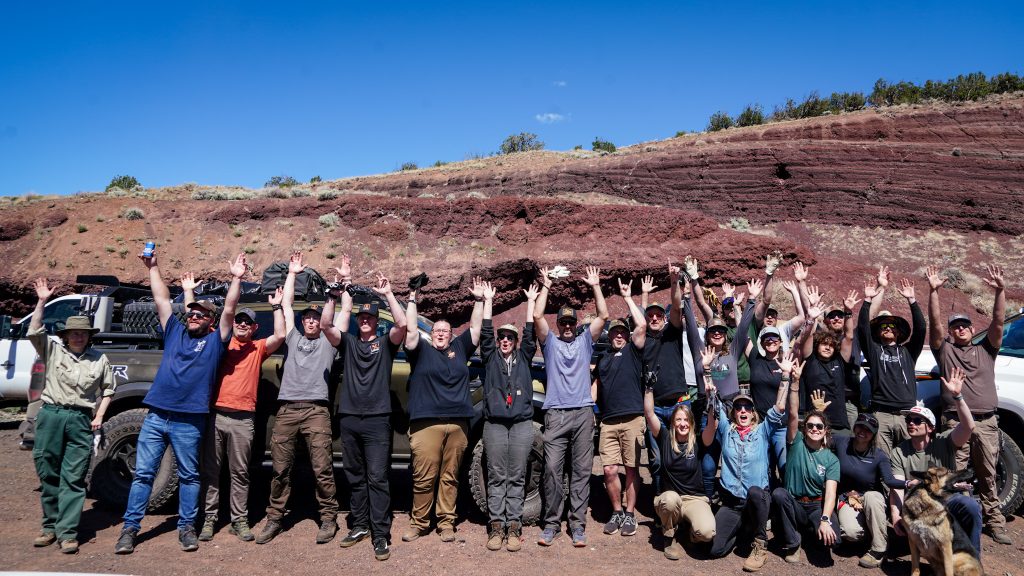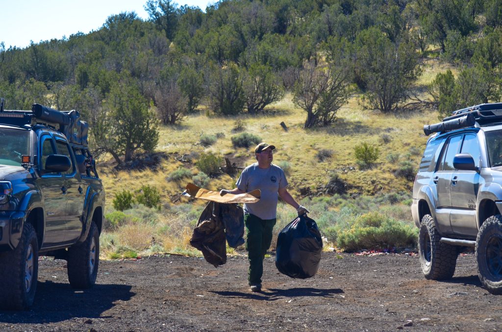 Description: On May 15, to kick off Overland Expo West, 25 volunteers gathered to clean up the Winona Shooting area in the Coconino National Forest.