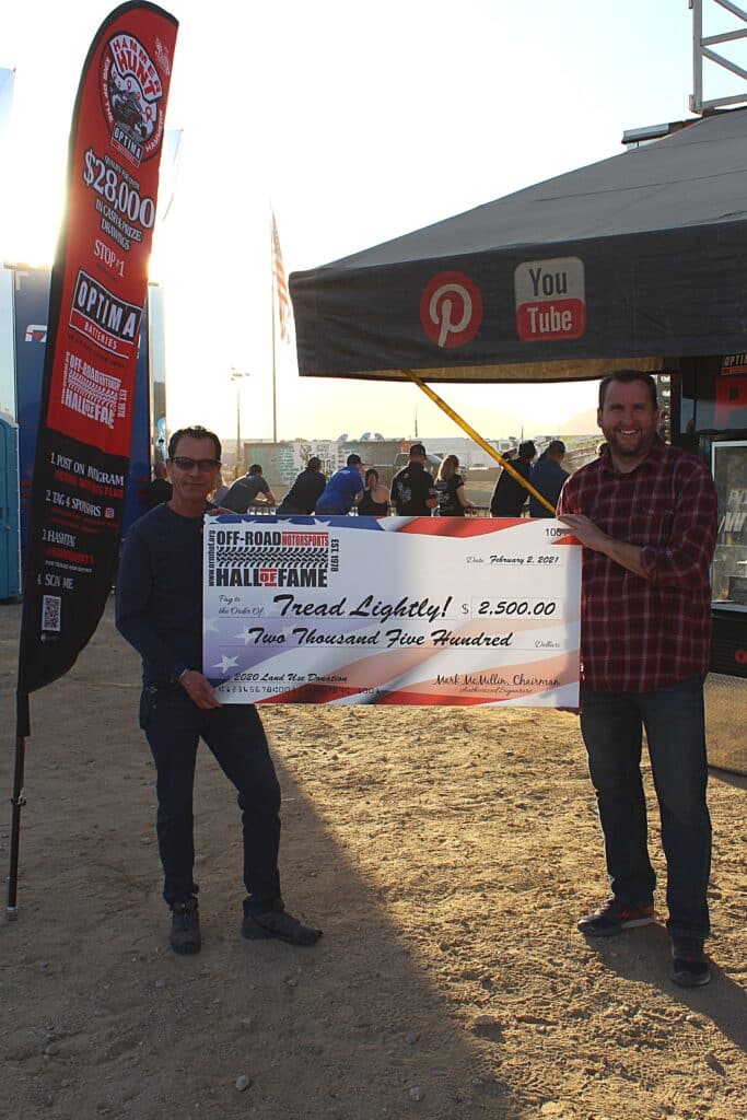“We are proud to support Tread Lightly! with our annual land use donation,” said Mark McMillin, ORMHOF Chairman. “The Off-Road Motorsports Hall of Fame knows the value in responsible trail use. Without open trails, the off-roading community cannot thrive. We are excited to support Tread Lightly! as they continue to work to keep trails open and accessible.”