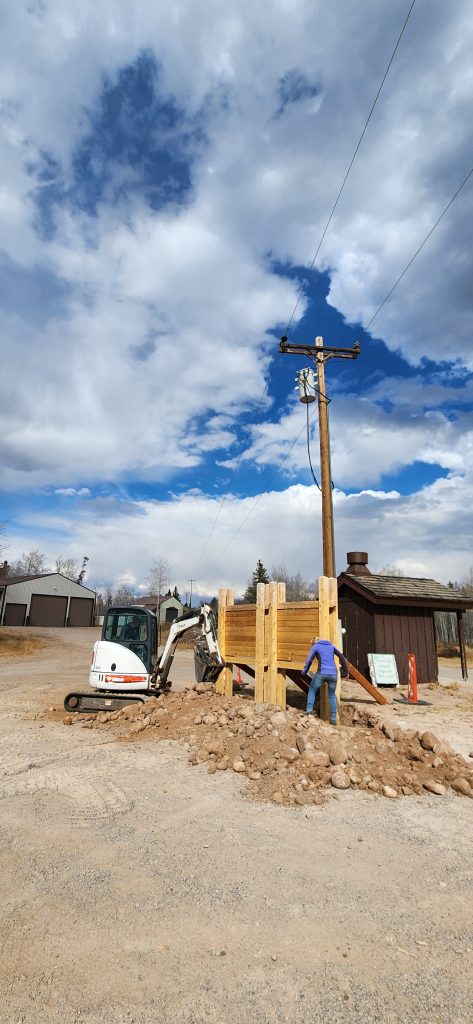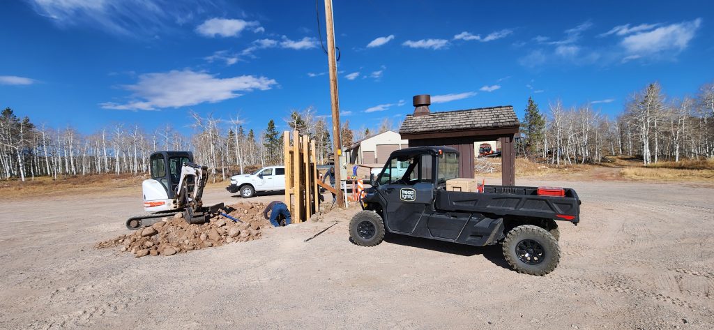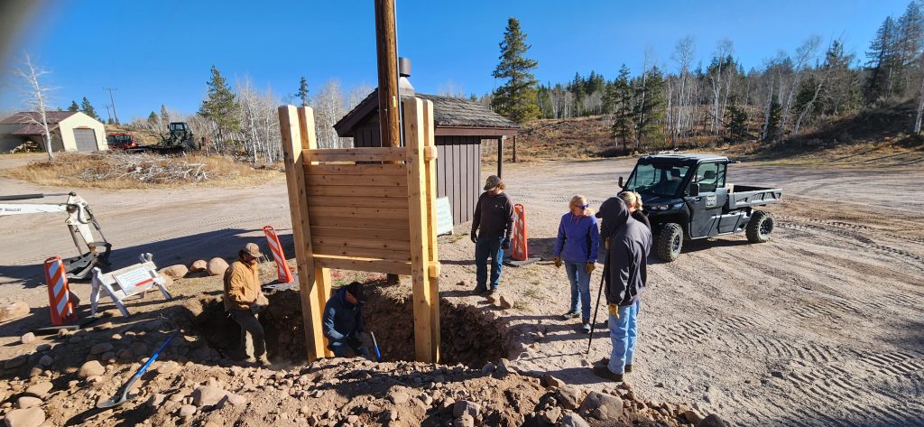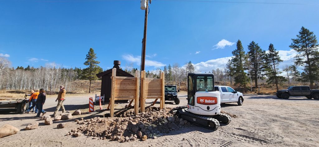 The project began at Whitney Reservoir. With the help of a mini-excavator and hand tools, two new kiosks were installed. This area is very popular and is used heavily for dispersed camping, fishing, hunting and OHV recreation.